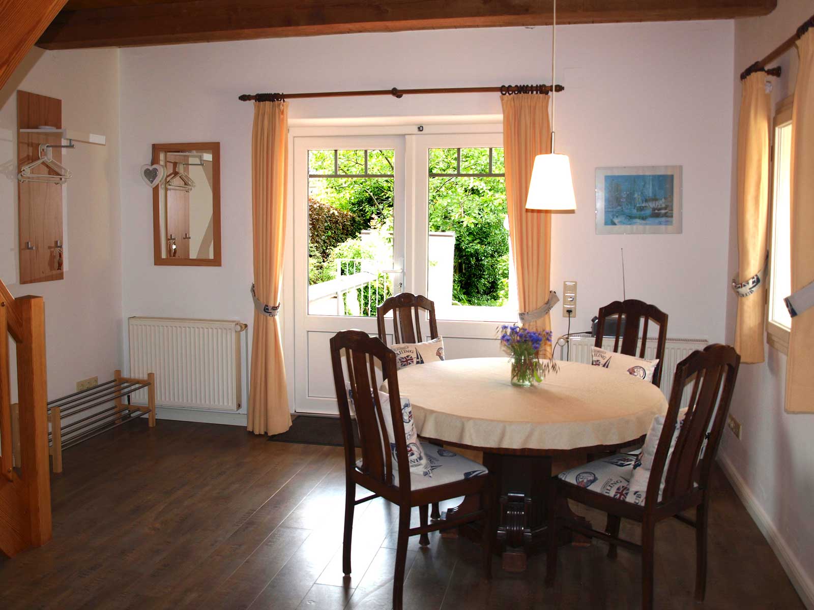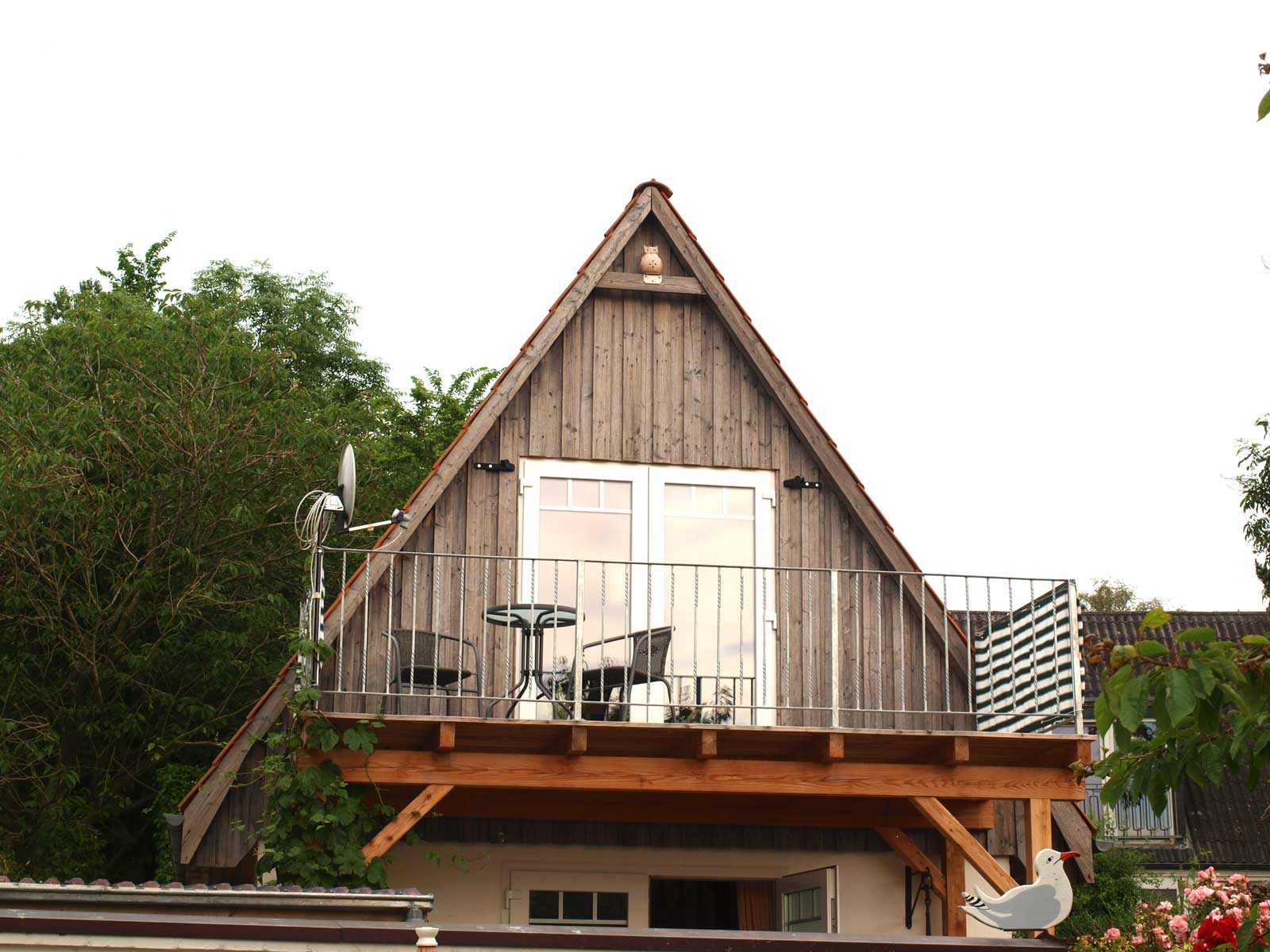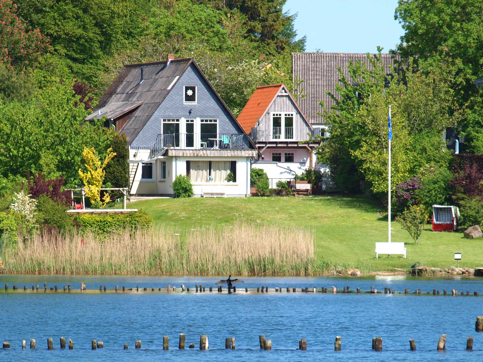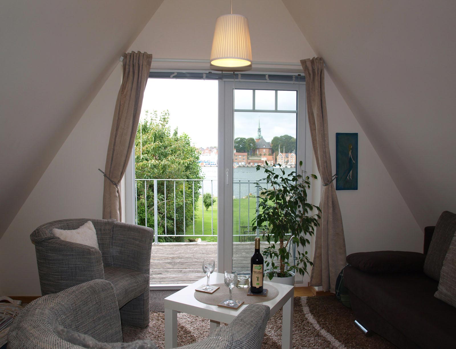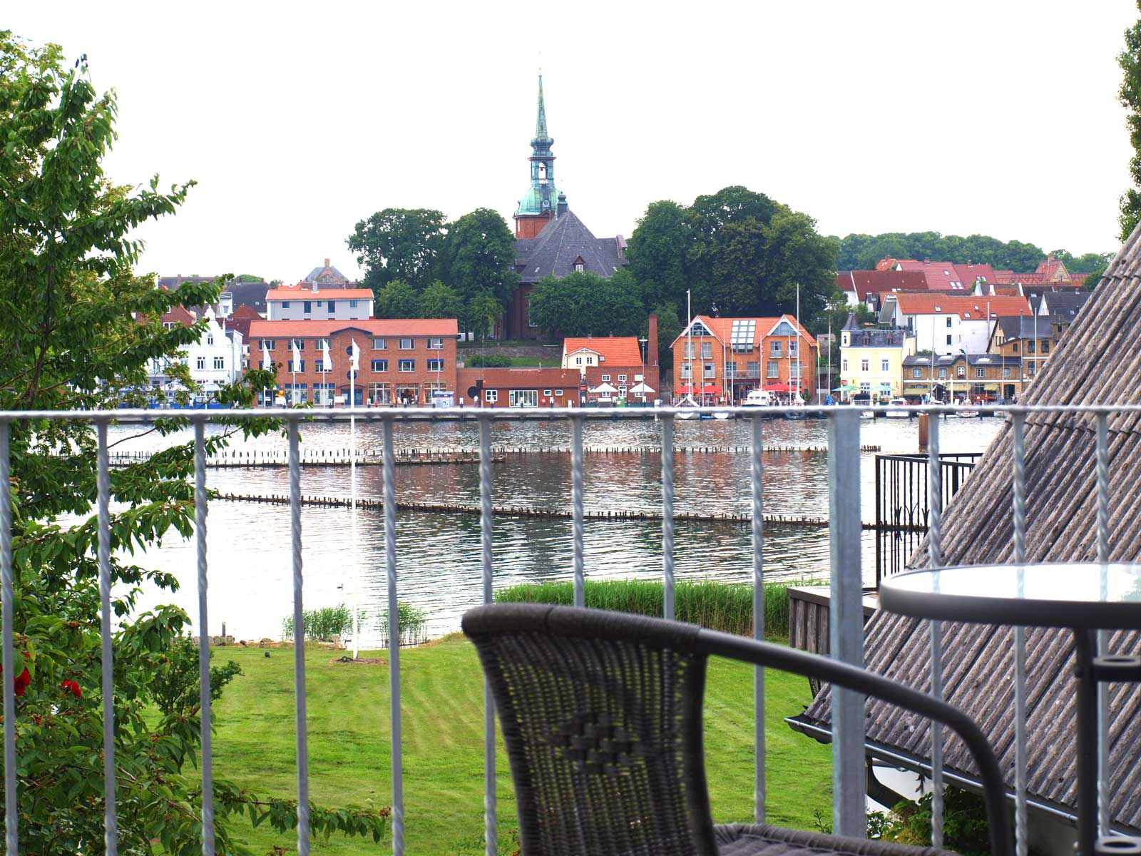 Schönes Ferienhäuschen mit 2 Bettenplätzen im Schiffergang 1 in 24376 Kappeln an der Schlei und nahe der Ostsee. Das große Grundstück ist direkt am Schleiufer und besitzt einen Steg. Aus dem Haus haben Sie einen direkten Blick auf die Schlei und die Kappelner Skyline. Genießen Sie aus dem Wohnzimmer oder vom Balkon den einmaligen Blick über die Schlei (Ostseefjord) auf den letzten Heringszaun Europas und auf den Hafen und die Altstadt von Kappeln (Deekelsen). Vom Ufer neben unserem Ferienhaus wurden auch Aufnahmen für die ZDF Serie: "Der Landarzt" aufgenommen. Die Kleinstadt Kappeln mit ca. 10.000 Einwohnern ist im Film der fiktive Ort "Deekelsen" an der Schlei. Die Raumaufteilung ist wie folgt: Im Erdgeschoss : Wohnraum mit Essplatz und offener Küche incl. Einbauküche ,1 Duschbad mit WC, kleiner Abstellraum. Im Obergeschoss : 1 Schlaf und Wohnraum mit 1 Doppelbett und 1 Sofa mit 2 Relax-Sesseln, insgesamt ca. 65 qm. Wir empfehlen dieses Haus für 2 Personen, dafür ist es optimal, evtl. mit Kleinkind. Eine schöne separate Terrasse vor dem Haus und ein großer Garten stehen Ihnen ebenso wie ein PKW Stellplatz zur Verfügung. Weitere Stellplätze befinden sich in ausreichender Zahl nur ca. 50m entfernt. Das Ufergrundstück ist 2700 m² groß und bietet genug Platz zum Sonnenbaden, relaxen oder spielen. Der Schiffergang ist eine ruhige Anlieger-Sackgasse. Zum Schleiufer sind es nur wenige Schritte. Hier befindet sich Ihr privater kleiner Holzsteg mit Sitzgelegenheit. Von dort haben Sie einen der schönsten Ausblicke auf den neuen Heringszaun, die Schleibrücke, den Hafen mit Ausflugsschiffen, Gastliegerhafen und auf die Altstadt von Kappeln – genießen Sie es! Natürlich können Sie auch vom Balkon oder aus dem Wohnzimmer die Schlei und den Heringszaun bewundern. Mit den schönen Eindrücken krönen Sie den Tag bei einem traumhaften Sonnenuntergang über Kappeln und der Schlei von der Terrasse oder aus dem Garten Ihres Ferienhauses. Sie können von unserem Ferienhaus zu Fuß, mit dem Rad oder dem Auto, Kappeln und die Landschaftsteile Angeln und Schwansen und die nahe Ostsee erkunden. In der Nähe gibt es viele weitere Sehenswürdigkeiten wie das Landesmuseum Schloß Gottorf und das Wikingermuseum Haitabu in Schleswig, das Wasserschloß Glücksburg, Multi Mar Wattforum (Wale, Watt, Weltmeere) in Tönning, die Phänomenta (eine interaktive Ausstellung) in Flensburg, eine Museumsbahn fährt zwischen Kappeln und Süderbrarup, Fischmarkt in Kappeln und Eckernförde, Schleifahrten mit einem Raddampfer, Tolkschau Freizeitpark, Damp Wellnesscenter mit Entdeckerbad für die Kleinen und vieles mehr. Weitere Sehenswürdigkeiten in Kappeln Sehenswürdigkeiten in der Schlei Region