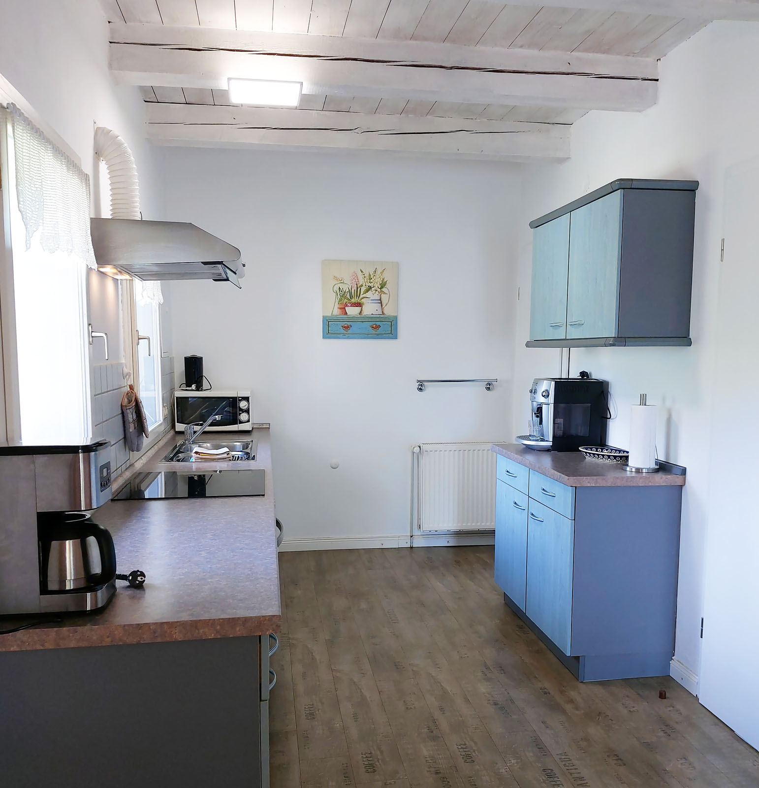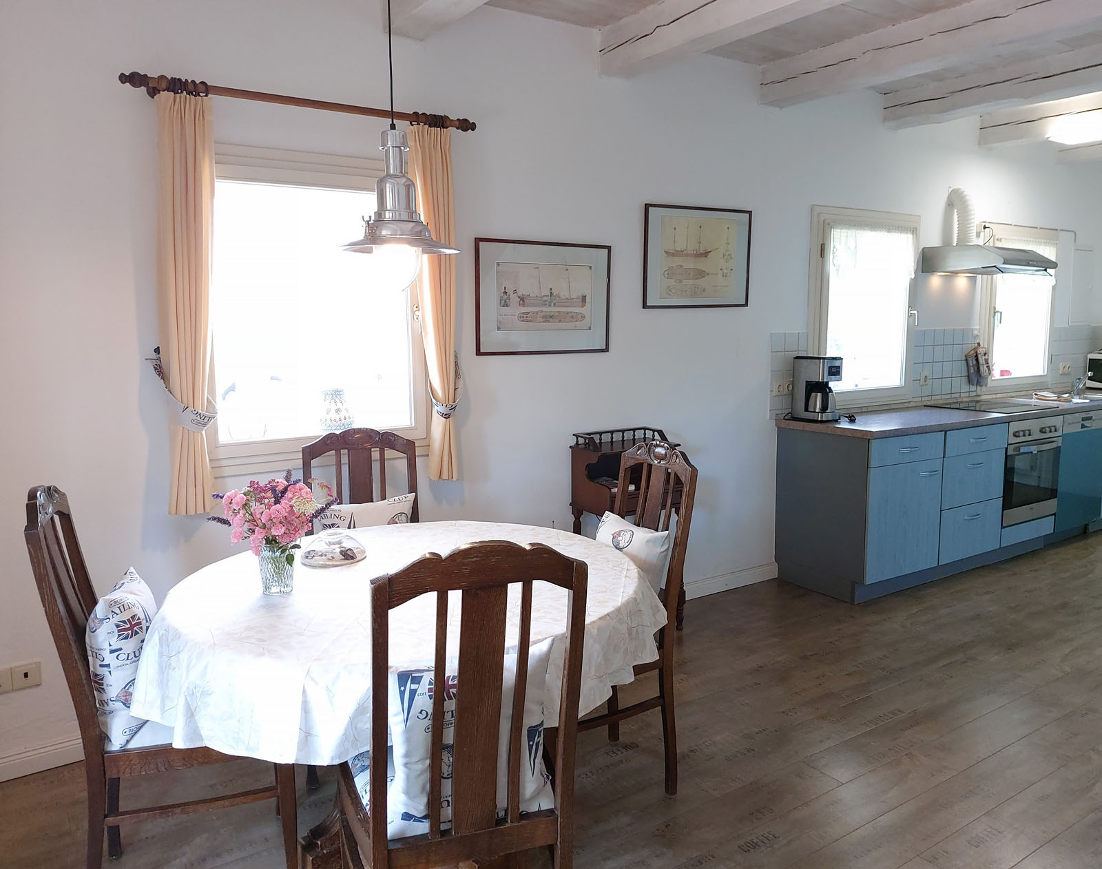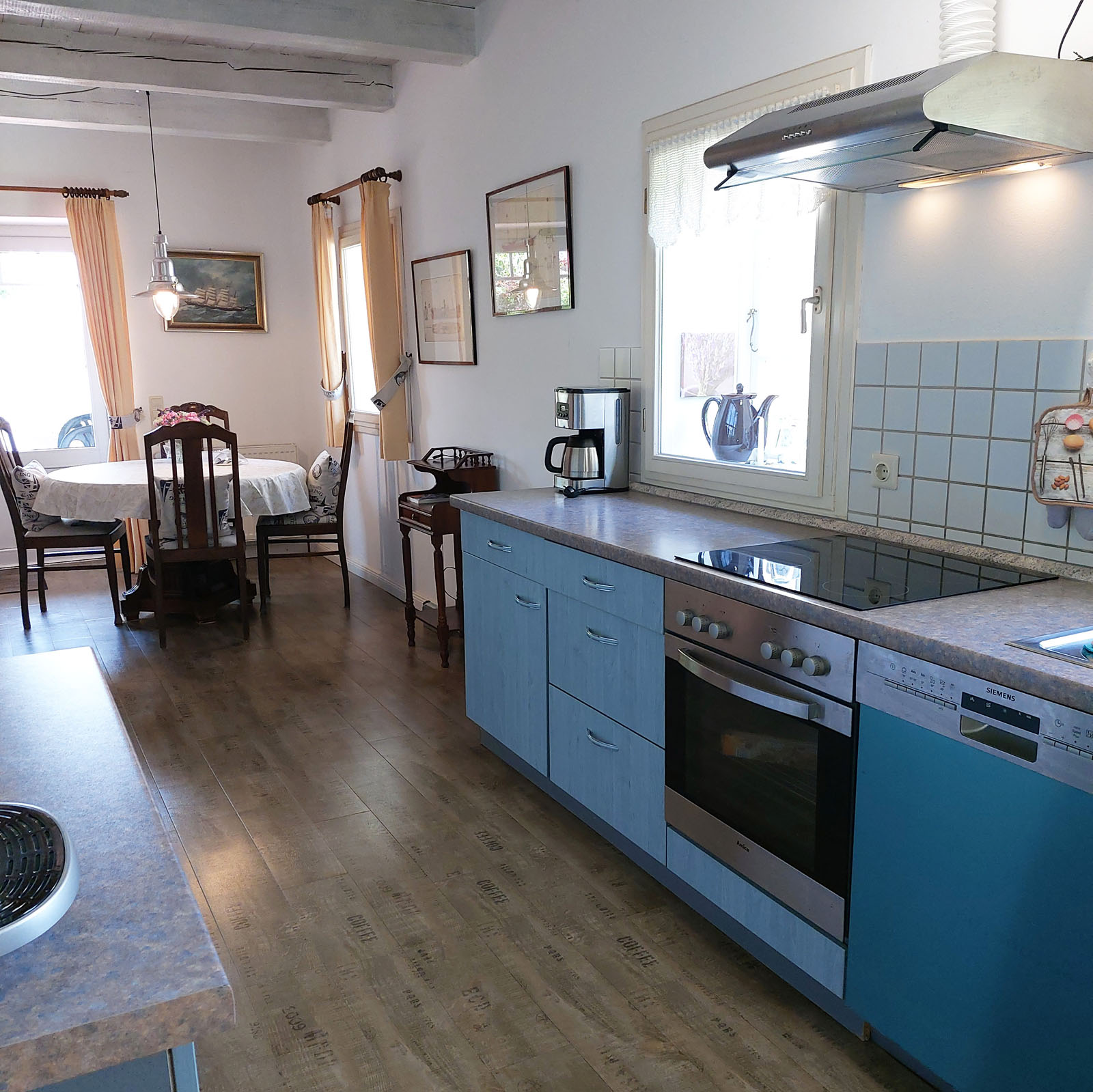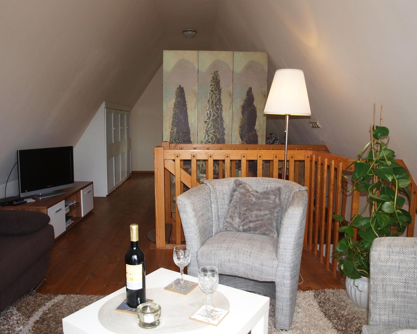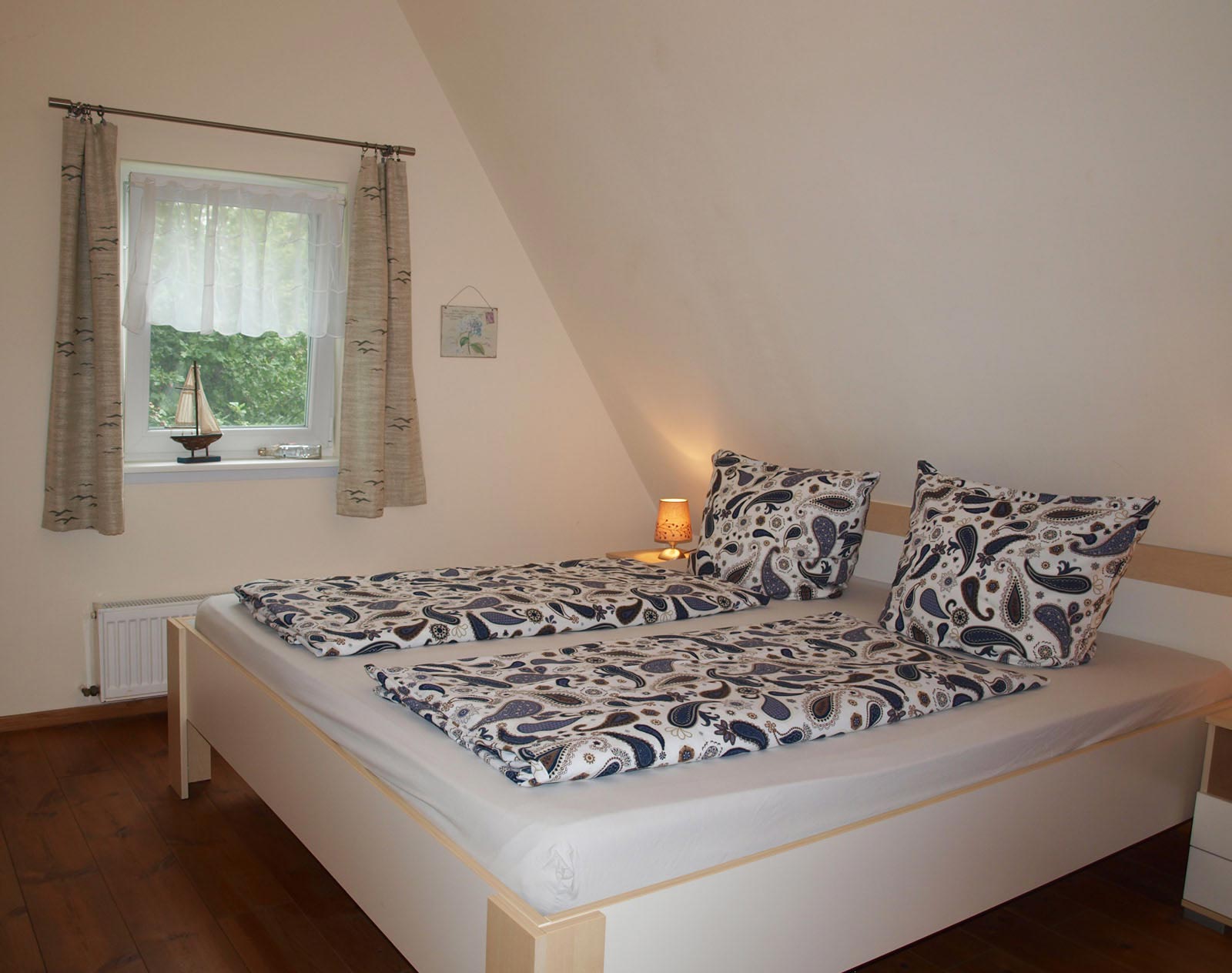 Schönes Ferienhäuschen mit 2 Bettenplätzen im Schiffergang 1 in 24376 Kappeln an der Schlei und nahe der Ostsee. Das große Grundstück ist direkt am Schleiufer und besitzt einen Steg. Aus dem Haus haben Sie einen direkten Blick auf die Schlei und die Kappelner Skyline. Genießen Sie aus dem Wohnzimmer oder vom Balkon den einmaligen Blick über die Schlei (Ostseefjord) auf den letzten Heringszaun Europas und auf den Hafen und die Altstadt von Kappeln (Deekelsen). Vom Ufer neben unserem Ferienhaus wurden auch Aufnahmen für die ZDF Serie: "Der Landarzt" aufgenommen. Die Kleinstadt Kappeln mit ca. 10.000 Einwohnern ist im Film der fiktive Ort "Deekelsen" an der Schlei. Die Raumaufteilung ist wie folgt: Im Erdgeschoss : Wohnraum mit Essplatz und offener Küche incl. Einbauküche ,1 Duschbad mit WC, kleiner Abstellraum. Im Obergeschoss : 1 Schlaf und Wohnraum mit 1 Doppelbett und 1 Sofa mit 2 Relax-Sesseln, insgesamt ca. 65 qm. Wir empfehlen dieses Haus für 2 Personen, dafür ist es optimal, evtl. mit Kleinkind. Eine schöne separate Terrasse vor dem Haus und ein großer Garten stehen Ihnen ebenso wie ein PKW Stellplatz zur Verfügung. Weitere Stellplätze befinden sich in ausreichender Zahl nur ca. 50m entfernt. Das Ufergrundstück ist 2700 m² groß und bietet genug Platz zum Sonnenbaden, relaxen oder spielen. Der Schiffergang ist eine ruhige Anlieger-Sackgasse. Zum Schleiufer sind es nur wenige Schritte. Hier befindet sich Ihr privater kleiner Holzsteg mit Sitzgelegenheit. Von dort haben Sie einen der schönsten Ausblicke auf den neuen Heringszaun, die Schleibrücke, den Hafen mit Ausflugsschiffen, Gastliegerhafen und auf die Altstadt von Kappeln – genießen Sie es! Natürlich können Sie auch vom Balkon oder aus dem Wohnzimmer die Schlei und den Heringszaun bewundern. Mit den schönen Eindrücken krönen Sie den Tag bei einem traumhaften Sonnenuntergang über Kappeln und der Schlei von der Terrasse oder aus dem Garten Ihres Ferienhauses. Sie können von unserem Ferienhaus zu Fuß, mit dem Rad oder dem Auto, Kappeln und die Landschaftsteile Angeln und Schwansen und die nahe Ostsee erkunden. In der Nähe gibt es viele weitere Sehenswürdigkeiten wie das Landesmuseum Schloß Gottorf und das Wikingermuseum Haitabu in Schleswig, das Wasserschloß Glücksburg, Multi Mar Wattforum (Wale, Watt, Weltmeere) in Tönning, die Phänomenta (eine interaktive Ausstellung) in Flensburg, eine Museumsbahn fährt zwischen Kappeln und Süderbrarup, Fischmarkt in Kappeln und Eckernförde, Schleifahrten mit einem Raddampfer, Tolkschau Freizeitpark, Damp Wellnesscenter mit Entdeckerbad für die Kleinen und vieles mehr. Weitere Sehenswürdigkeiten in Kappeln Sehenswürdigkeiten in der Schlei Region