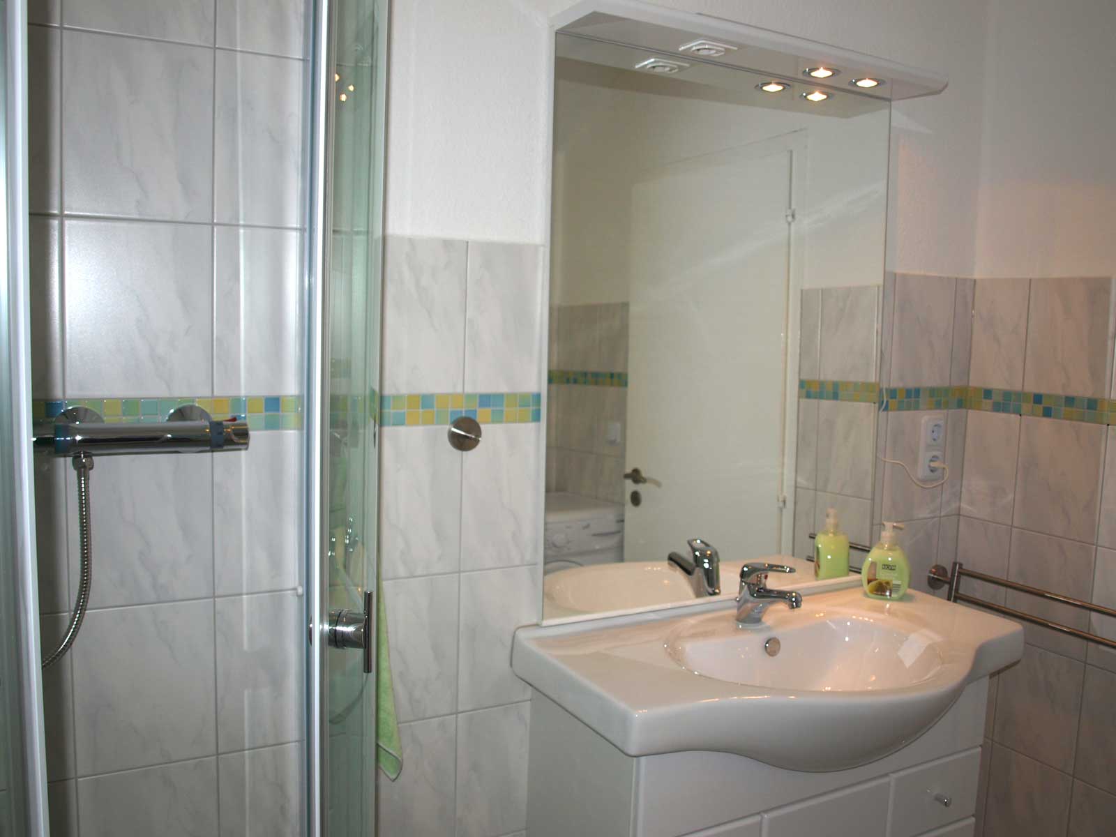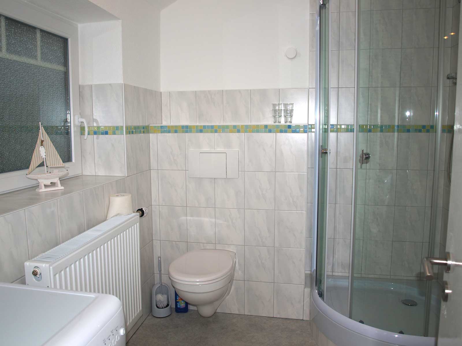 Großer Wohnraum mit separatem Essplatz, Küche mit neuer Einbauküche, 3 Schlafräume mit je 2 Betten, 2 Duschbäder mit WC. (bei Buchung von 2 Personen wird nur 1 Duschbad gestellt, alternativ 2 Duschbäder gegen höhere Reinigungspauschale.)