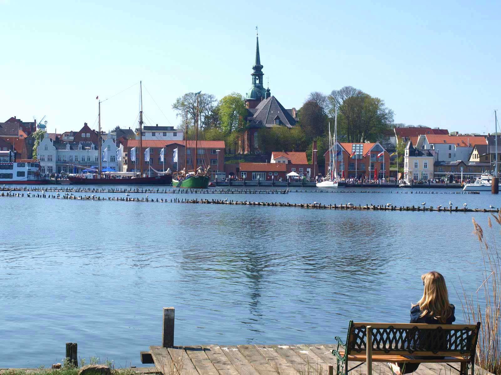 den Hafen mit Ausflugsschiffen, Gastliegerhafen und auf die Altstadt von Kappeln – genießen Sie es!